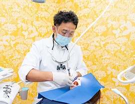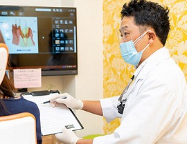 患者さんが気になっているお口の不安なことなどをお聞きしながら、お口の中を状態を把握するための検査をします。そのデータを元に、虫歯や歯周病のリスクがないか、清掃状態に問題がないかなど、総合的に判断し、患者さんにピッタリの予防プログラムを作成します。