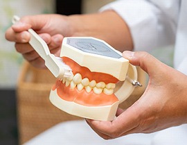 患者様一人ひとりの歯並びに合わせて、適切なブラッシング方法をお伝えします。患者様には実際にお口の中を鏡で見ていただきながら、磨き残しやすい場所のブラッシングのコツをお伝えしています。奥歯など、お口の中が見えにくい場合は、模型を使用してご説明いたします。